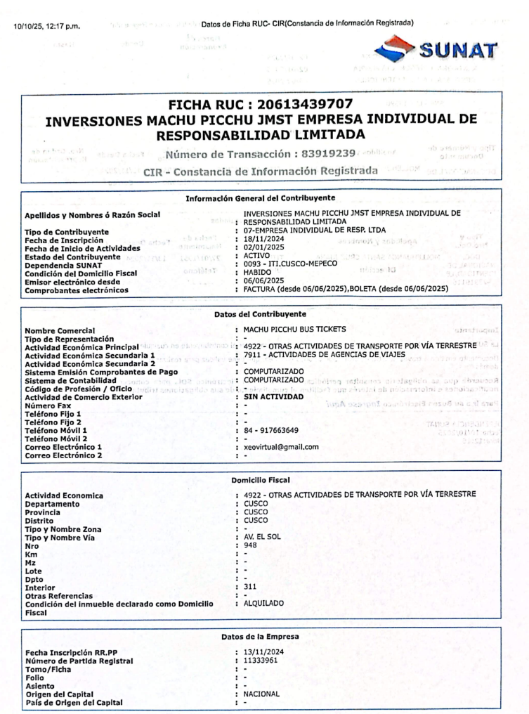 We are a local company with a physical office in the city of Cusco and a local team specializing in authentic experiences within the Sacred Valley of the Incas. We were founded with a clear mission: to offer every traveler a real connection with the history, culture, and nature of Cusco and its surroundings. We are not impersonal intermediaries; we are local operators who know every route, every community, and every detail that transforms a simple tour into a memorable experience. Our passion for the region is reflected in every service we provide and in the close relationship we build with our travelers.